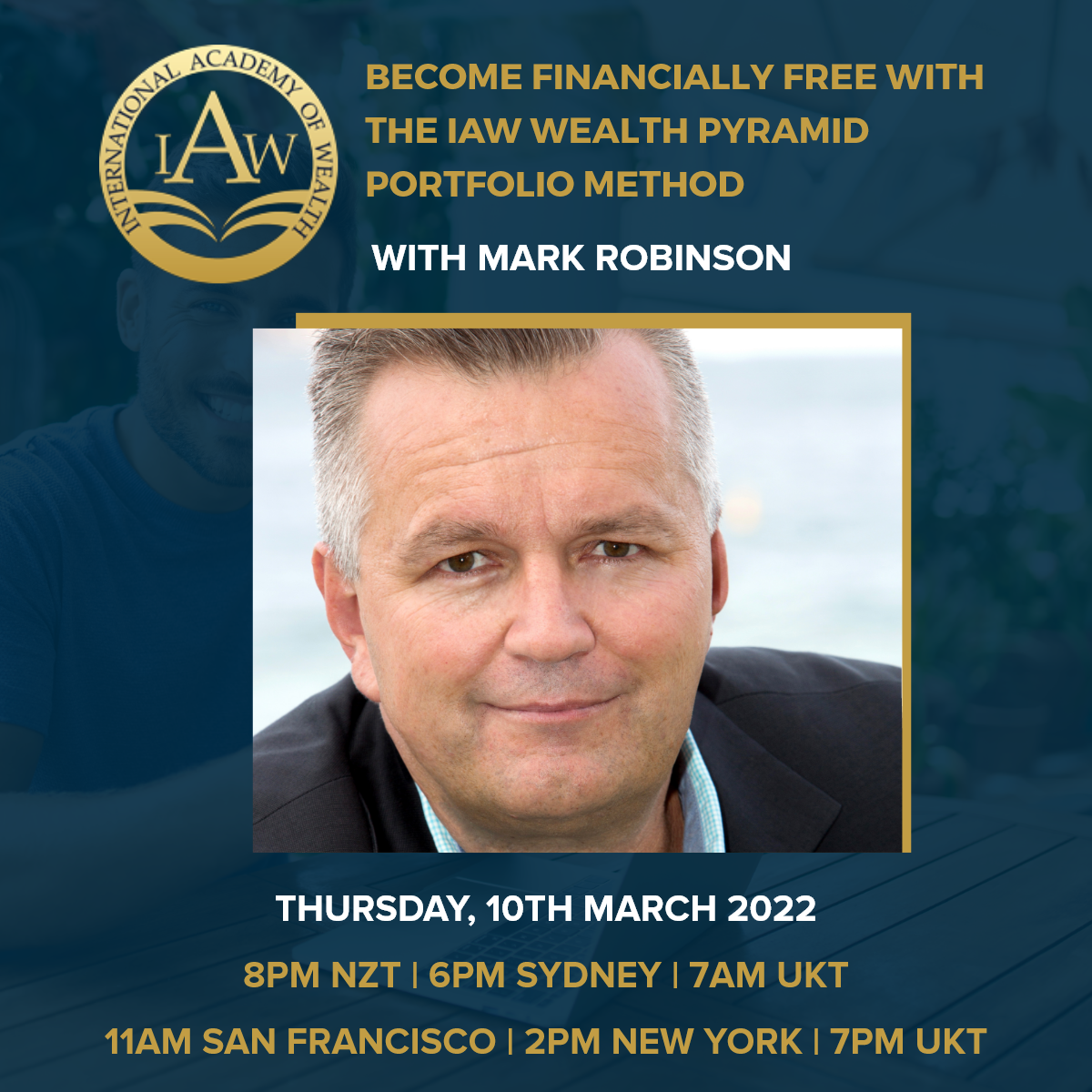 Join our upcoming FREE MASTERCLASS next week Thursday, 10th March with the Founder of the International Academy of Wealth, Mark Robinson.